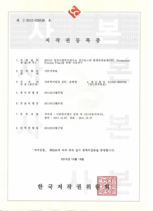 연구소소식 성민사회복지연구소 연구보고회 저작권등록