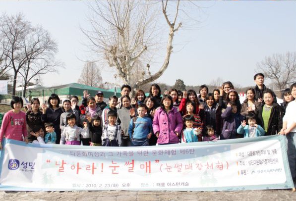 겨울의 끝자락인 지난 2월 23일 성민다문화가정지원센터에서는 다문화가정여성들과 함께 눈썰매장에 다녀왔다. 다문화가정여성들은 아이들과 함께 형형색색의 방한복을 챙겨 입고 호기심과 즐거움으로 마냥 들떠 있었다. 눈썰매장에 처음 와본 다문화여성들은 모두 신기함으로 눈이 휘둥그레졌다.