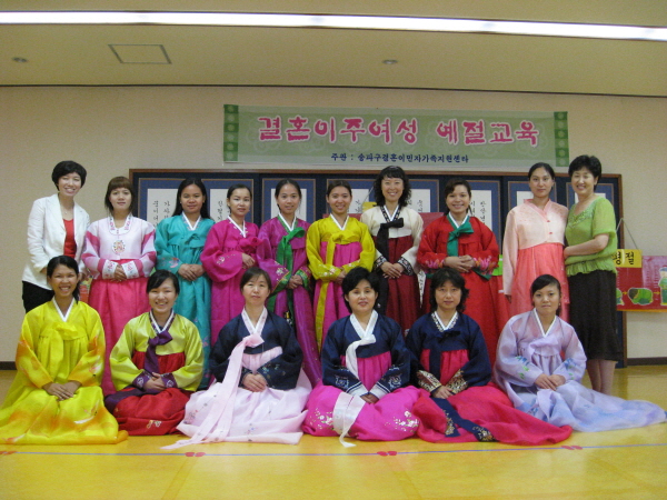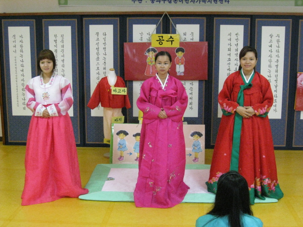[다문화]한복입기 및 예절교육 페이지 정보 작성자 법인사무국 작성일 08-07-04 00:00 목록 답변 본문 2008년 7월3일 (목) 한국어교실 학생들 한복입기 및 예절교육 다녀왔습니다.. 한복입는 방법과 절하는 방법이 어려웠지만 즐거운 시간을 보냈습니다..^^ 이전글[다문화] 한복입기 및 예절교육 08.07.04 다음글[다문화]한국어교실 6월 나들이 08.07.01