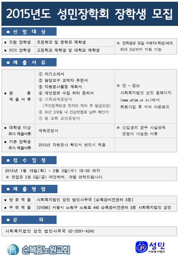 법인 2016년도 성민장학회 모집 선발 공고